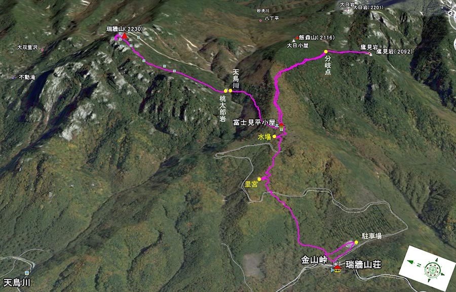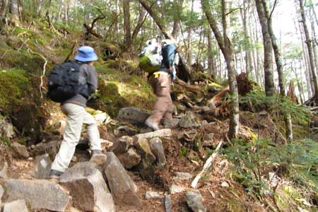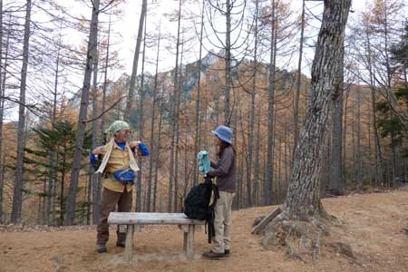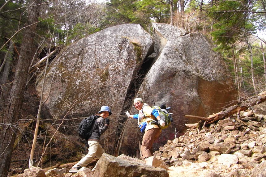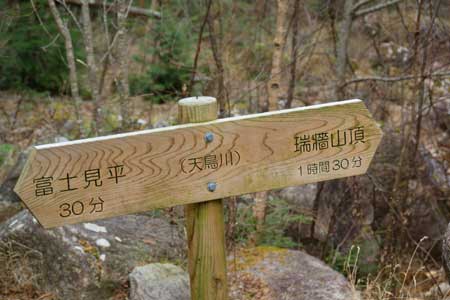 〜 天鳥川(桃太郎岩)12:47-56 〜 小川山分岐 13:03 〜 富士見平小屋 13:19-56(昼食)