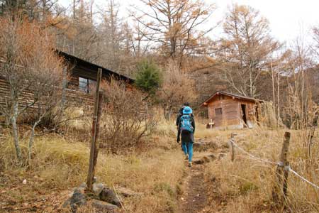 〜 富士見平小屋 8:44−9:00 〜 小川山分岐 9:17 〜 天鳥川(桃太郎岩) 9:22−27