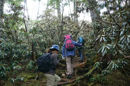 富士見平小屋発 13:56 〜 鷹見岩分岐 14:33 〜 鷹見岩 14:51−15:40
