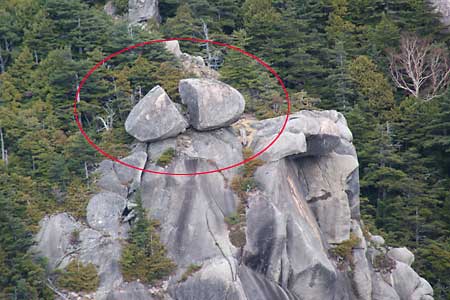瑞牆山発 11:47 〜 山頂西隣りの岩峰 11:52−12:00 〜 大岩くぐり 12:17