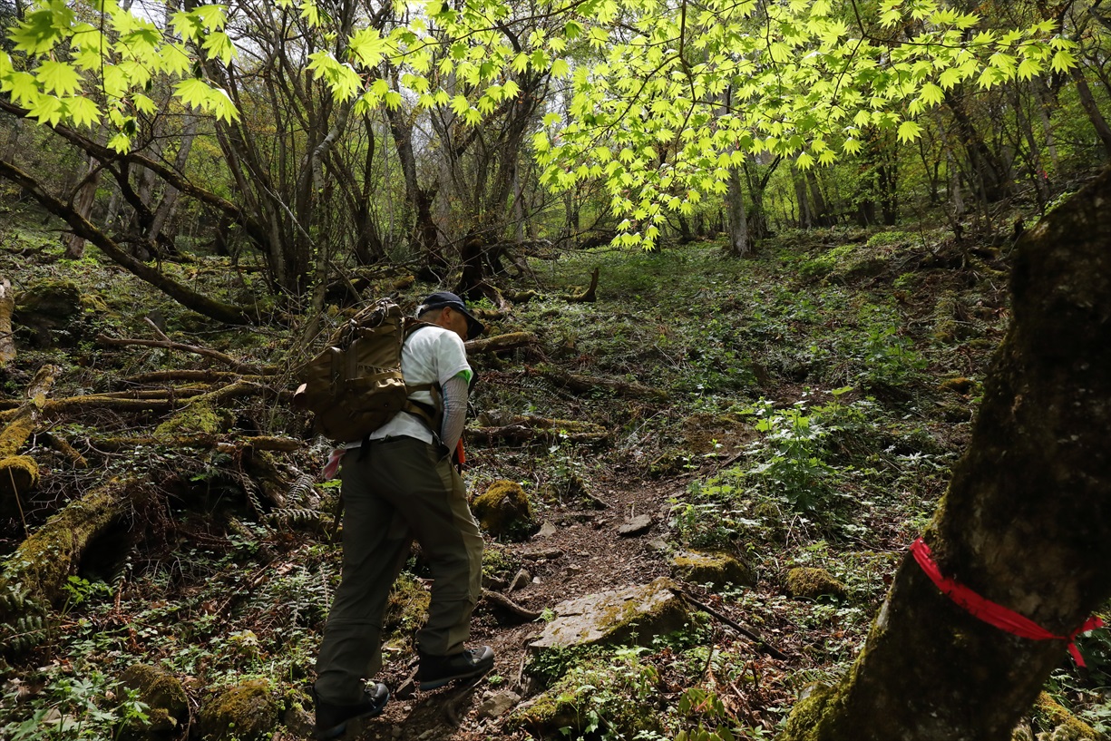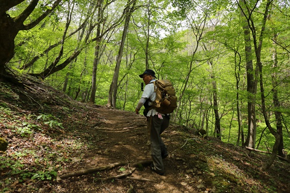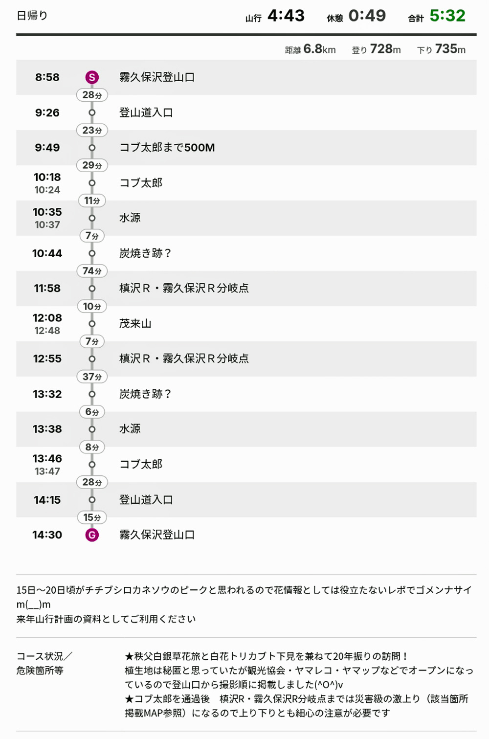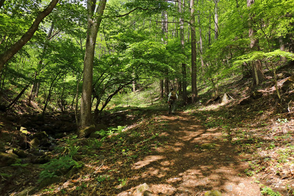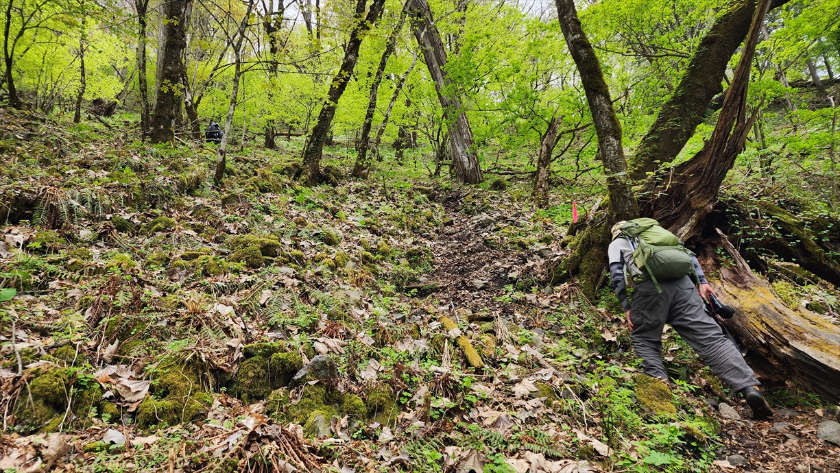 炭焼き跡通過後〜槙沢ルート分岐点までの標高差180b区間は激上りになるので上り下りとも転倒注意! |