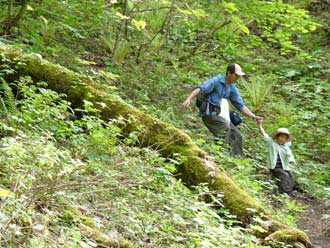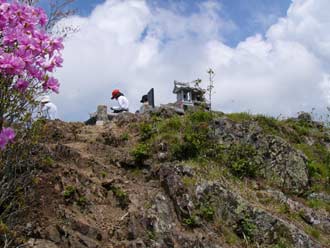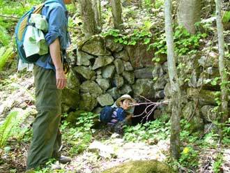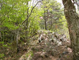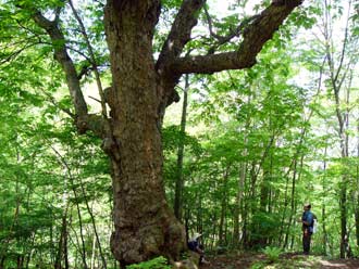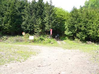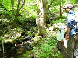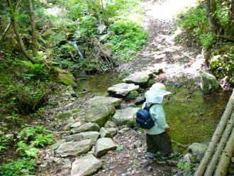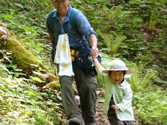 水源地上部からの急登を登り終えた聡太くん(槙沢分岐点近く) |