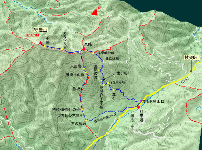 守屋山立石R〜東峰〜守屋山〜守屋神社R〜森林浴ルート解説 |