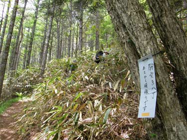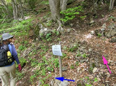 「清流の森」標柱通過後、道標に従って左側の登山道へ入る | ||||
