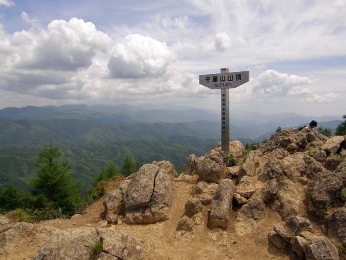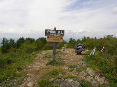 守屋山東峰の標柱が見える | 《写真にマウスを》 東峰⇔右奥が守屋山本峰 |