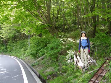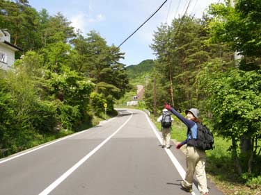 ここで国道に出る | 前方の左カーブ地点が立石R駐車場だ お疲れ様でした・・・ |