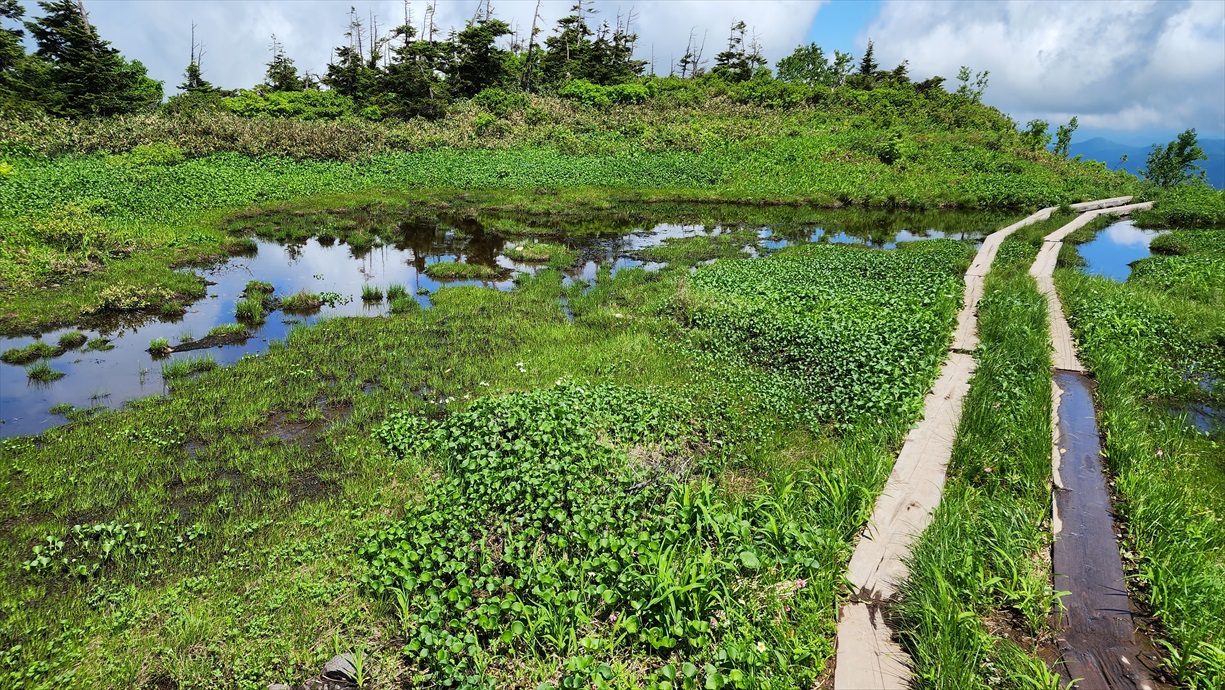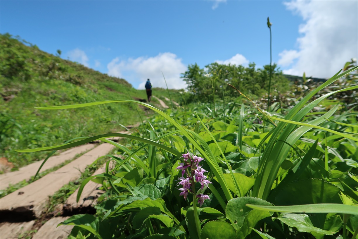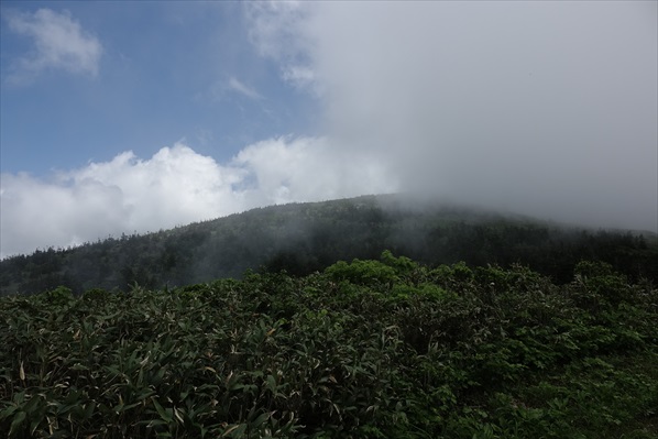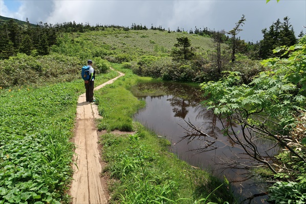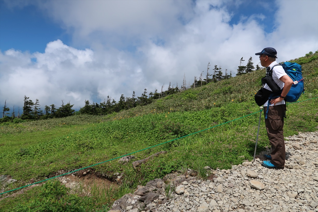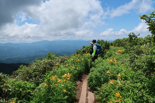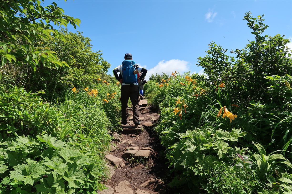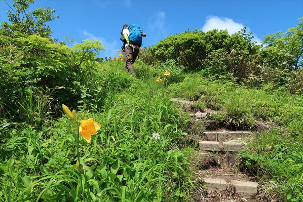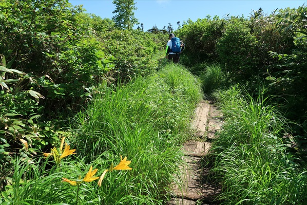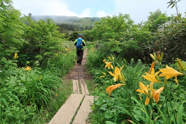 山頂にガスがかかる | ここもニッコウキスゲ花道 | |||