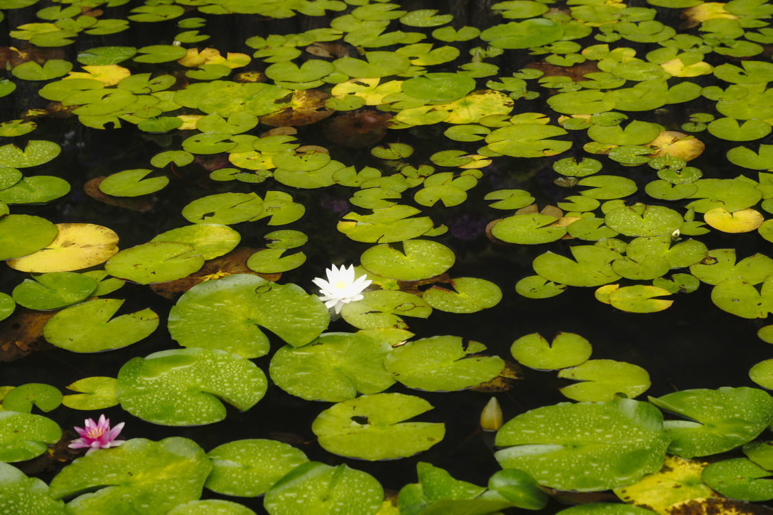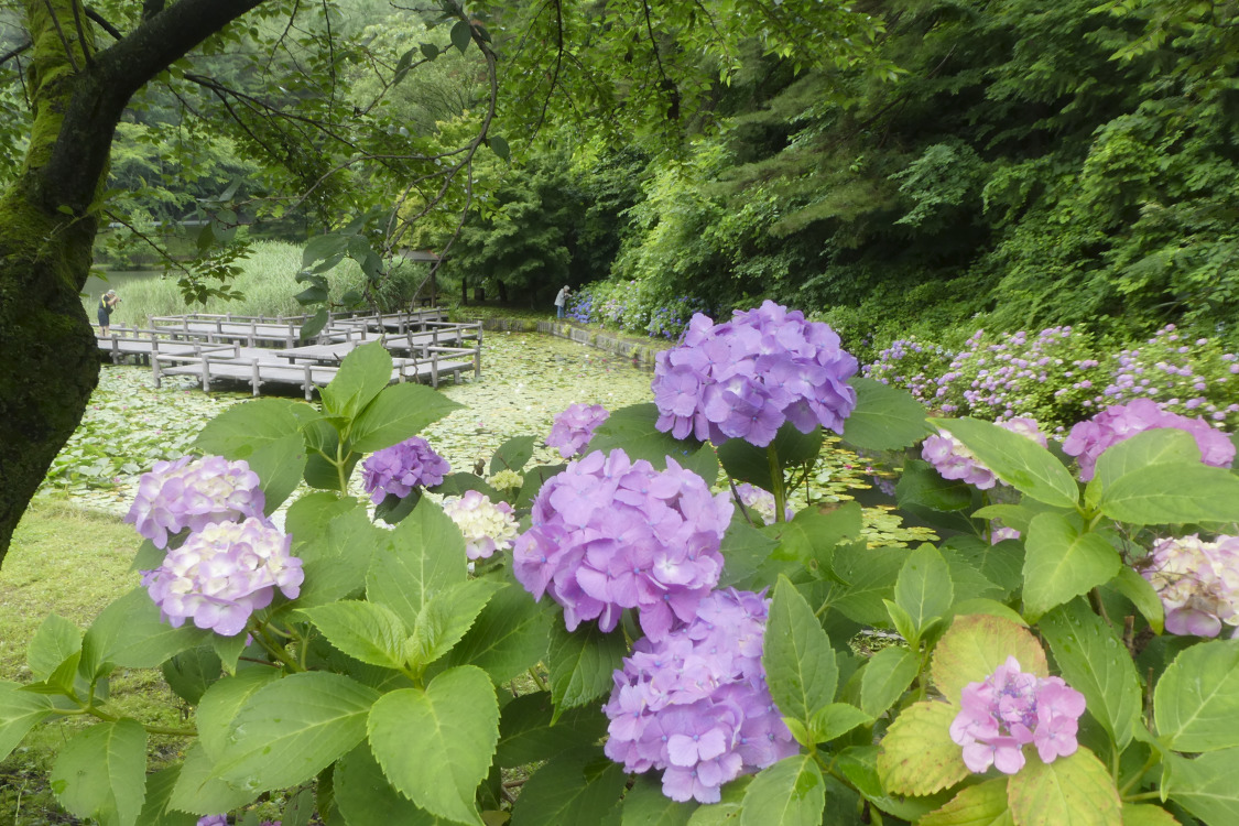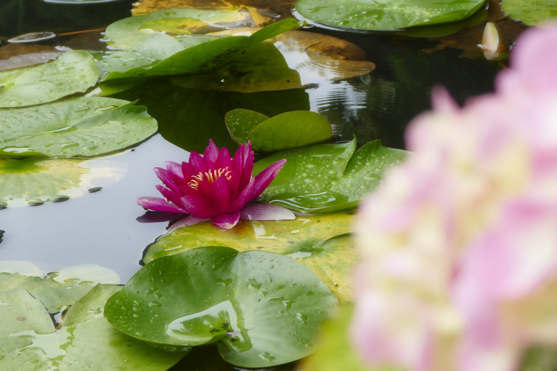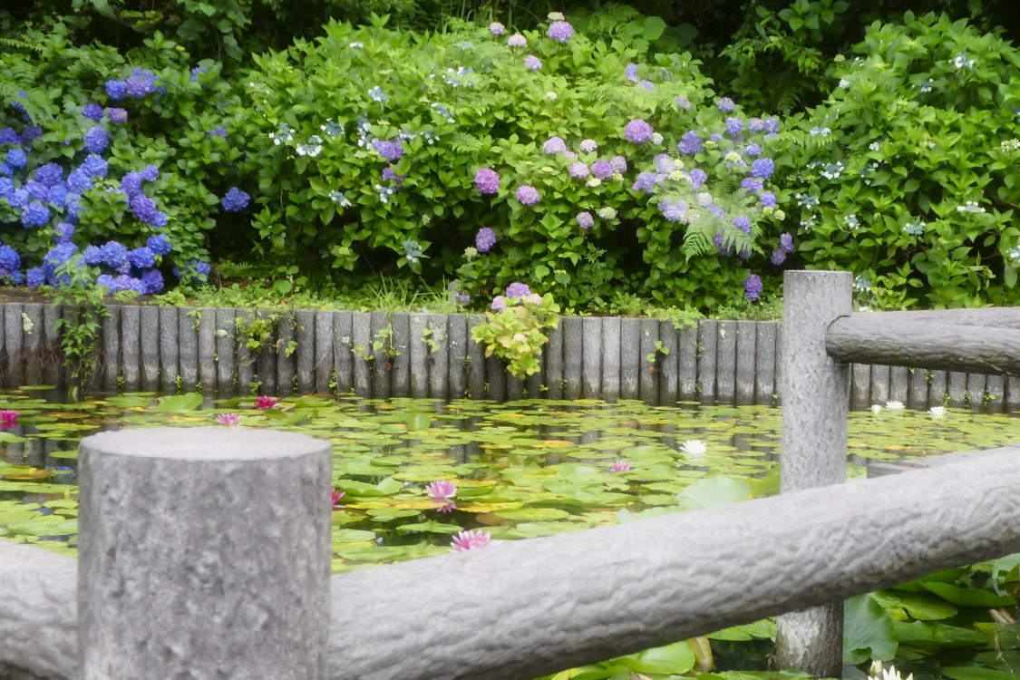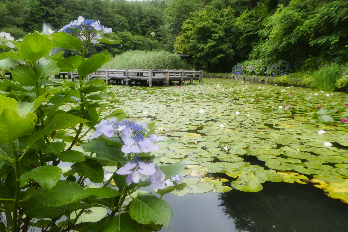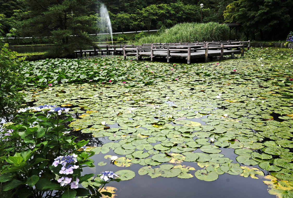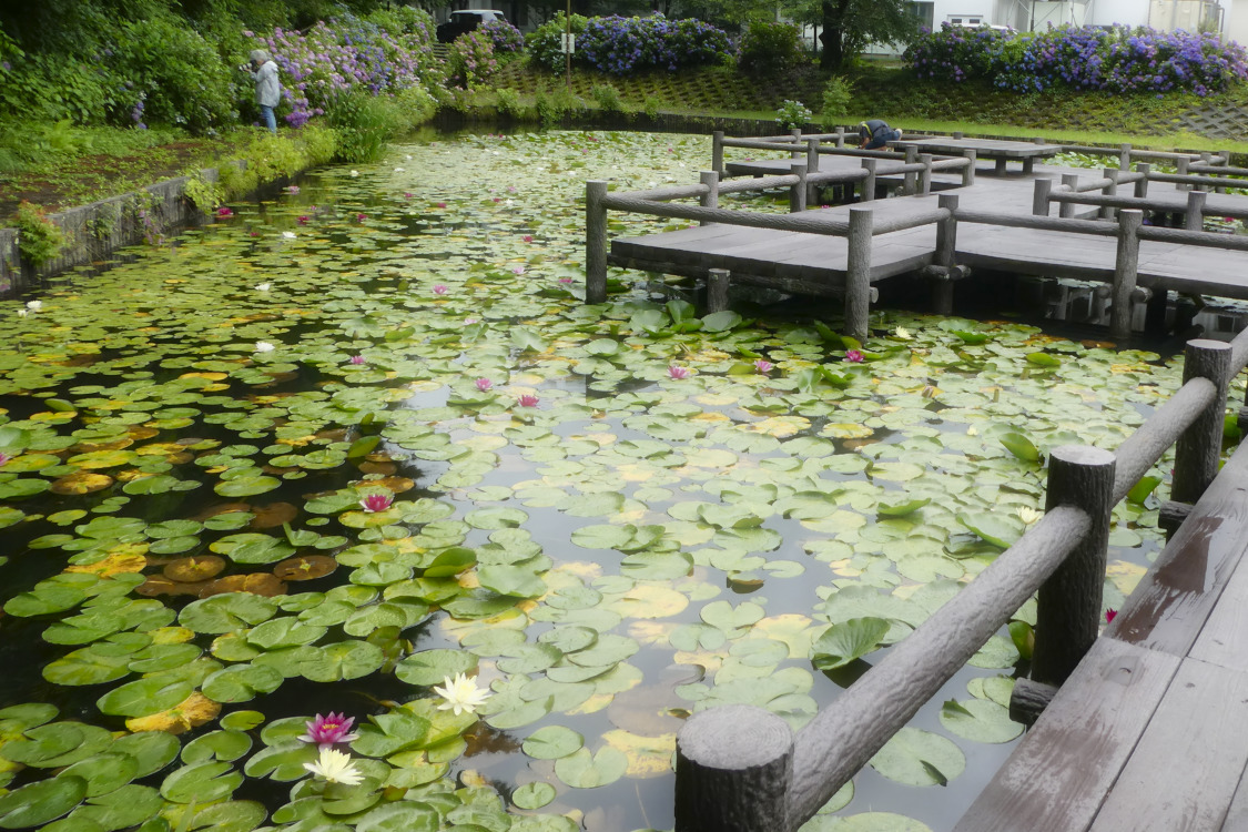 池の中に橋と東屋があるので睡蓮をほぼ真上から撮影&観賞できる♪ | ||||