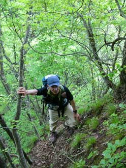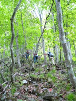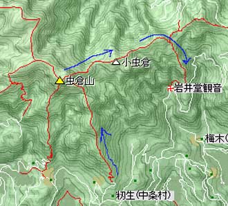 〈写真にマウスを〉 岩井堂ルートも小虫倉山まで 痩せ尾根が続くので要注意。 |