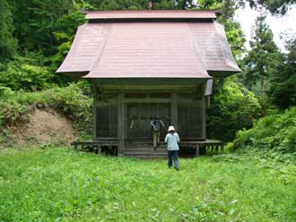 地京原虫倉神社 左側に小虫倉ルート登山口がある。 |
