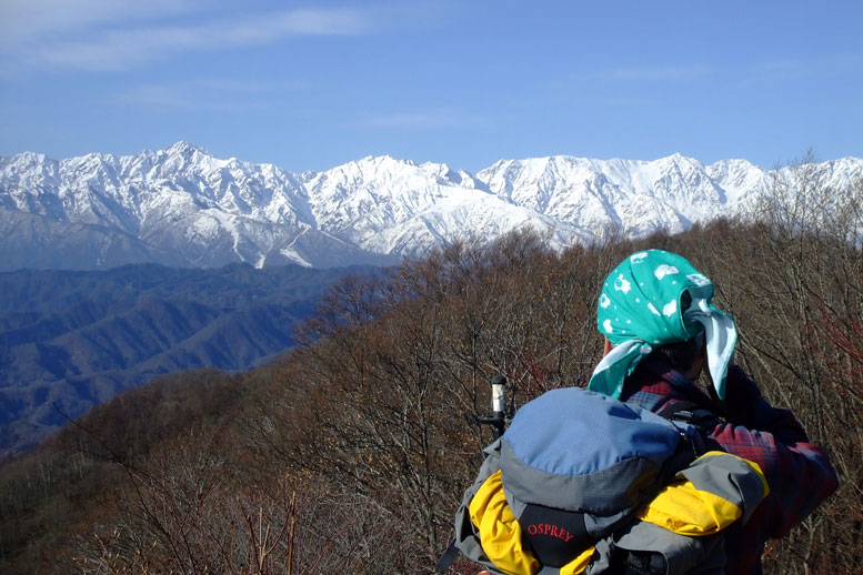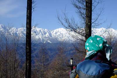 東屋で展望を楽しむ | 五竜岳の武田菱がクッキリと見える/東屋よりズーム撮影 | |||