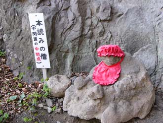 「本読みの僧」 中間道の中間点と書いてある。 |