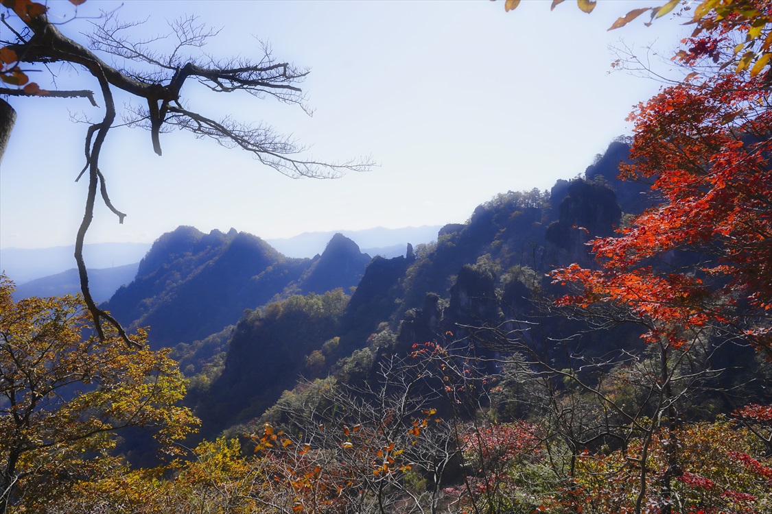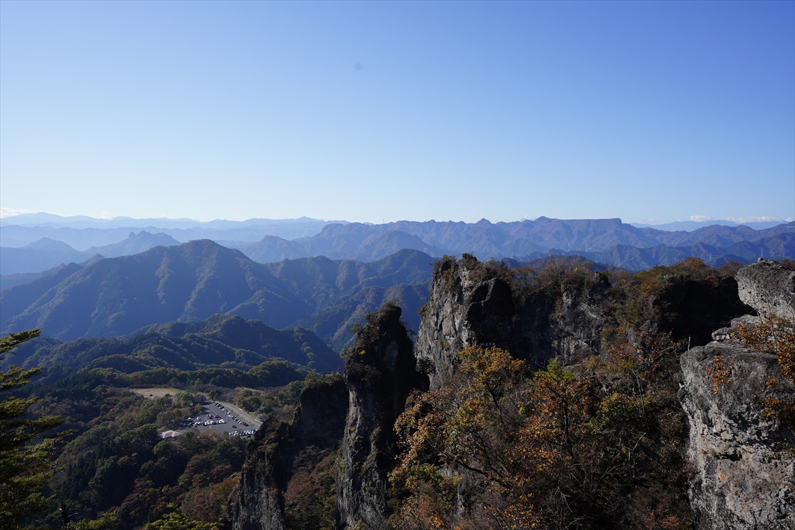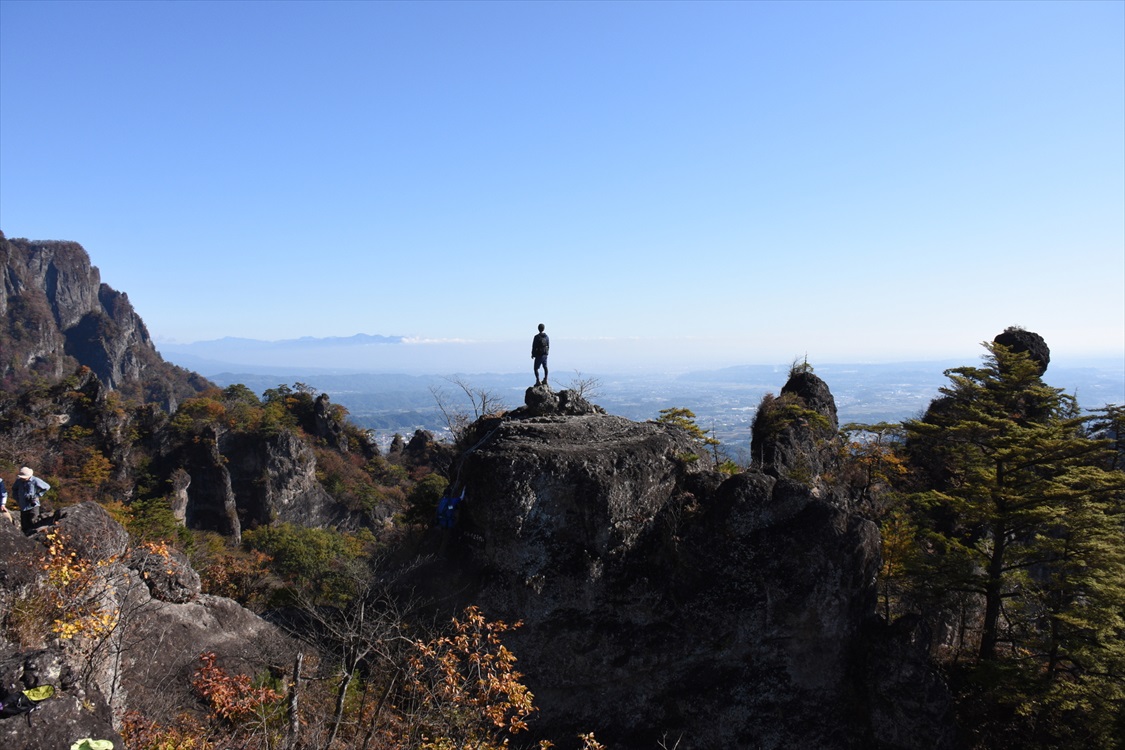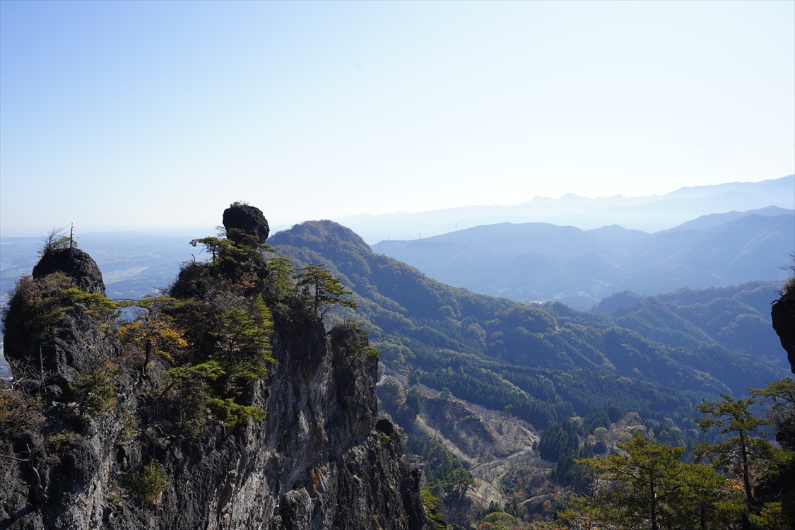 天狗の評定岩全景(大砲岩から撮影) 妙義山・大砲岩からのパノラマ図解あり |