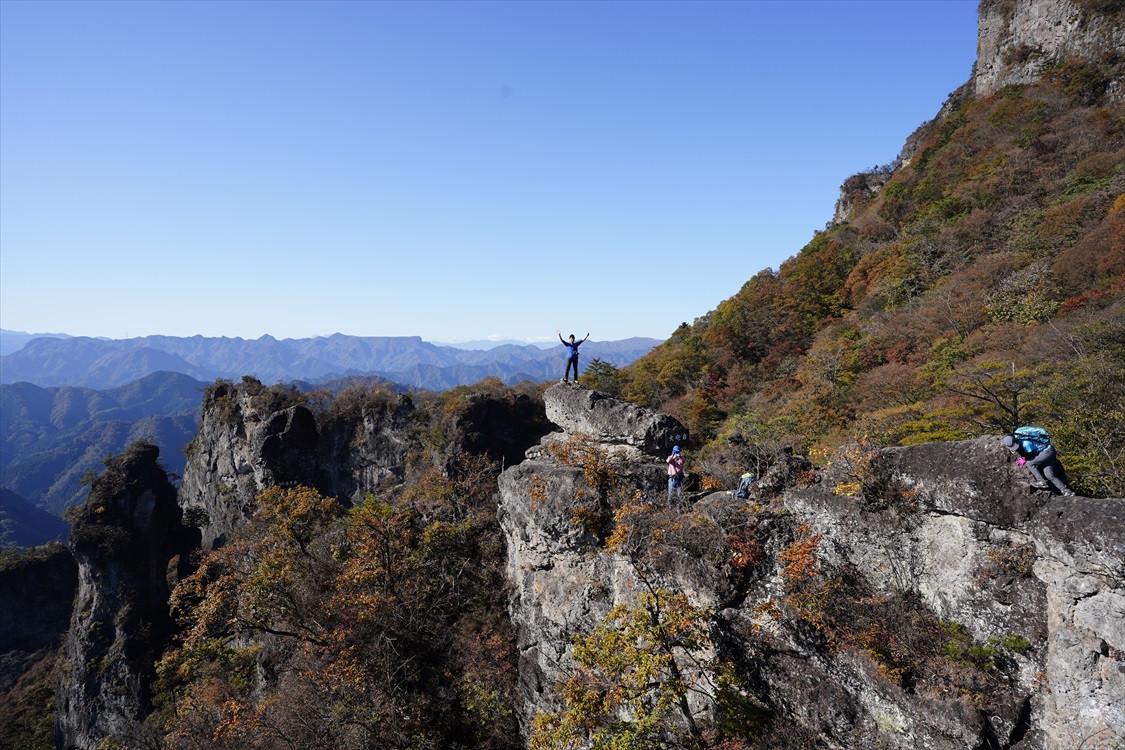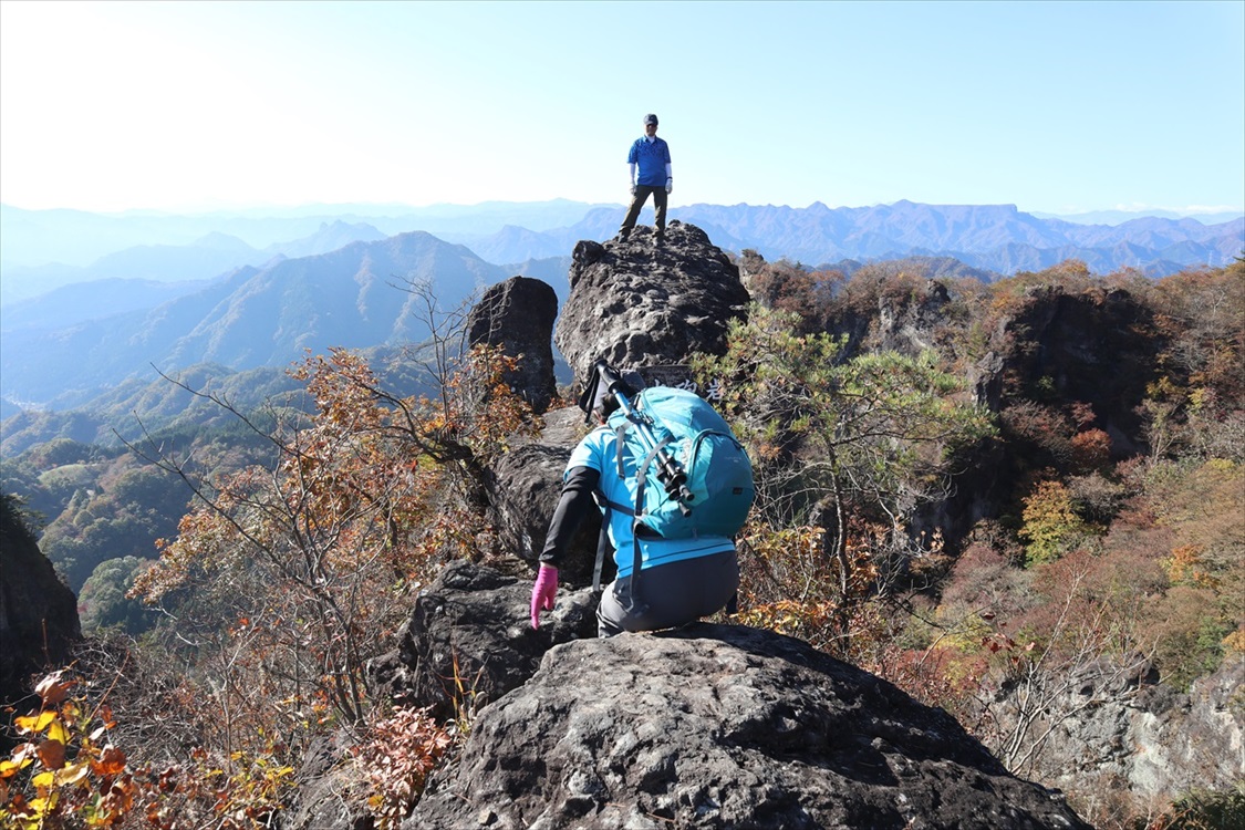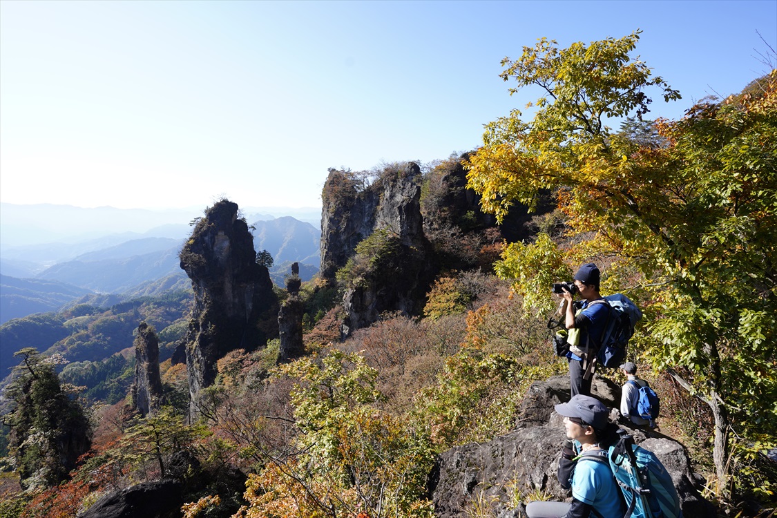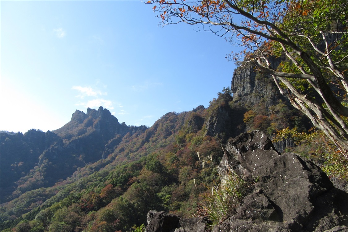 天狗の評定岩全景(大砲岩から撮影) 妙義山・大砲岩からのパノラマ図解あり |