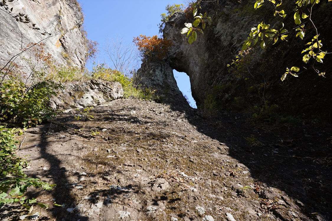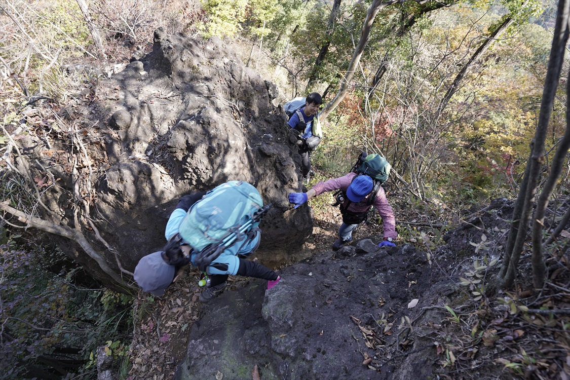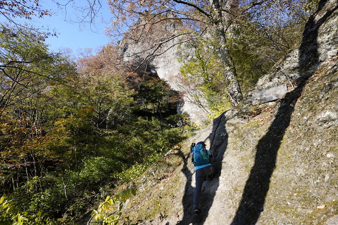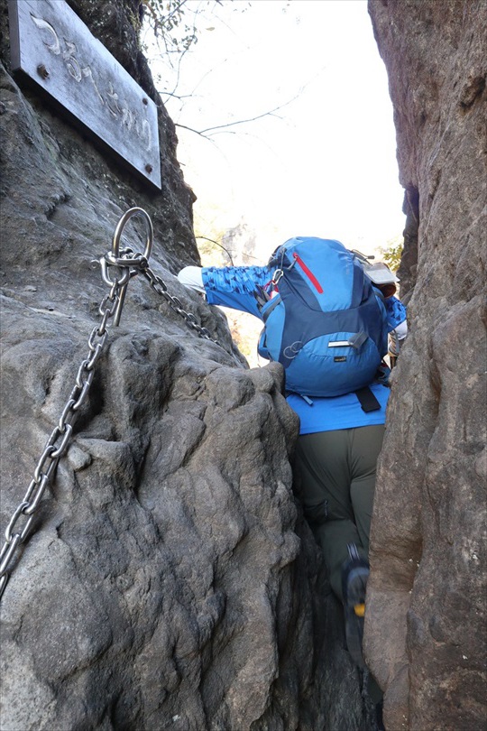 天狗の評定岩を降りる | 胎内くぐり岩横を降りる | |||