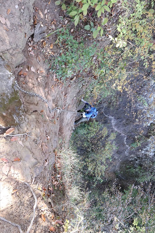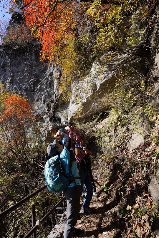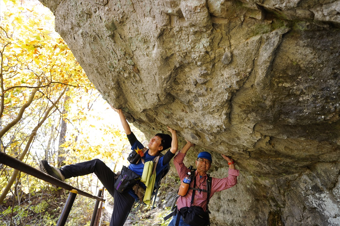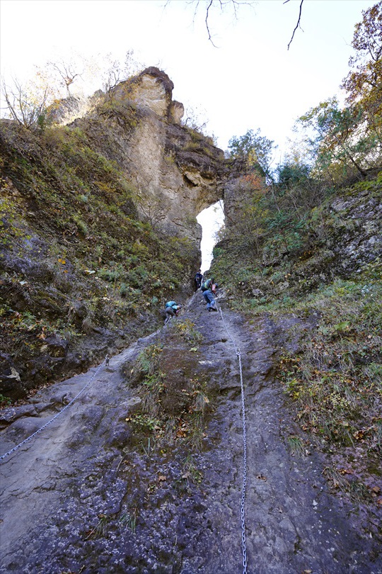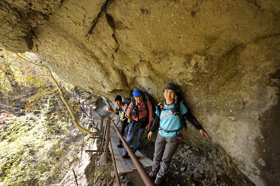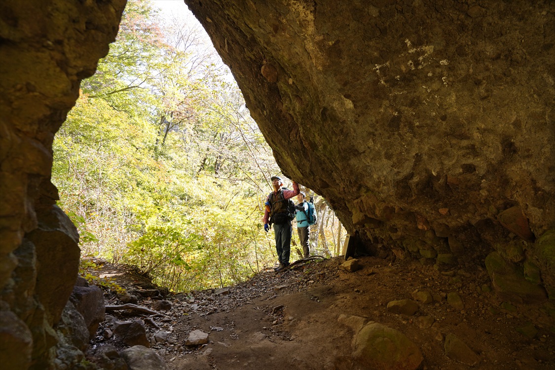 岩庇の下を歩く / 頭ゴツン注意! | ||||
