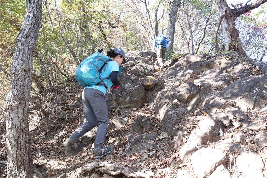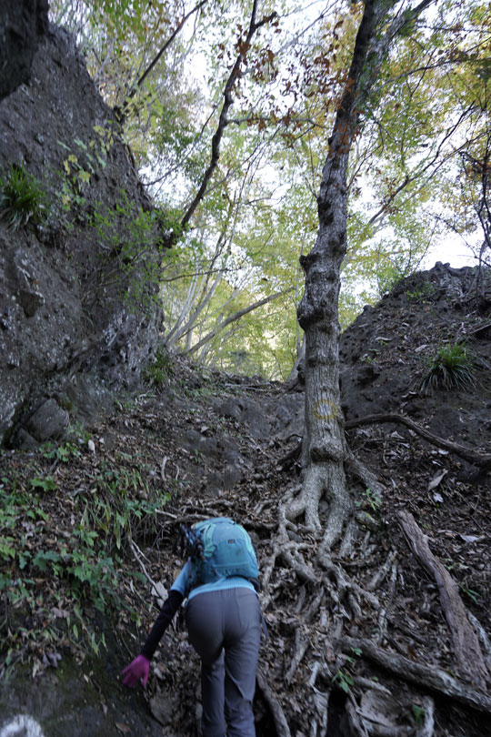 痩せ尾根の急登をファイト! | ||||