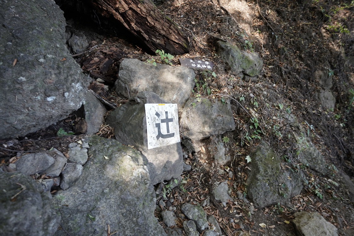 奥の院・大の字分岐点 奥の院は土砂崩落で通行止め |