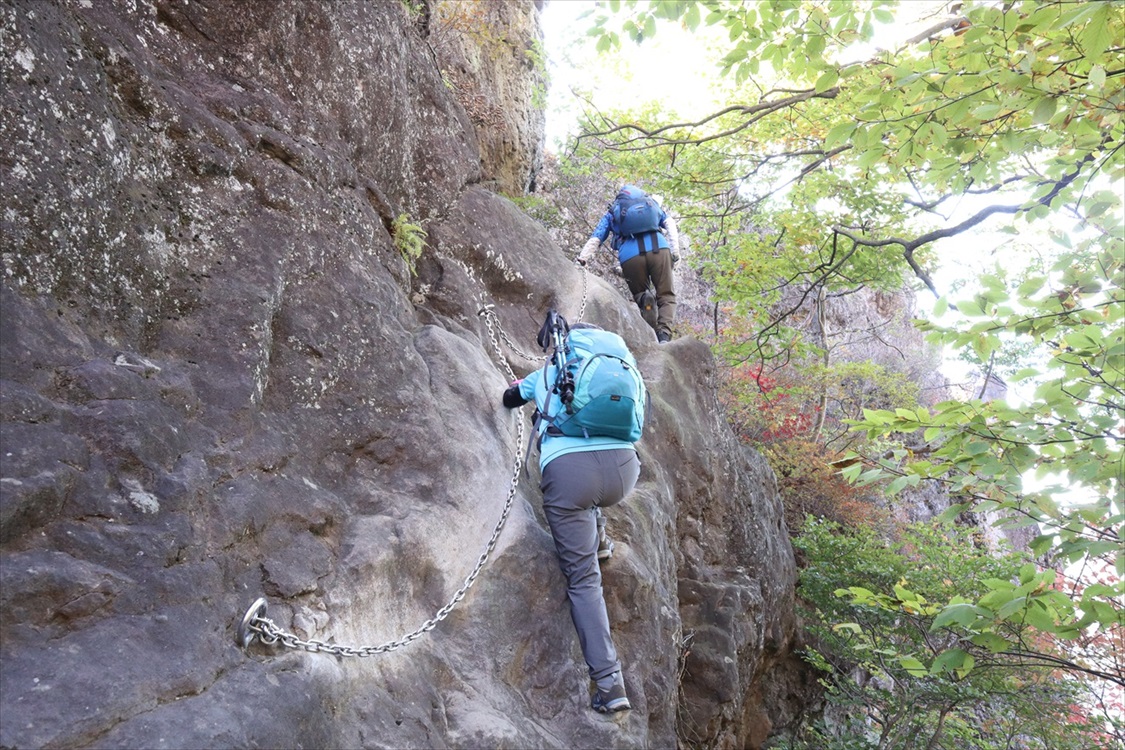 「かにの横ばい」通過後「たてばり」クサリ場 | ||||