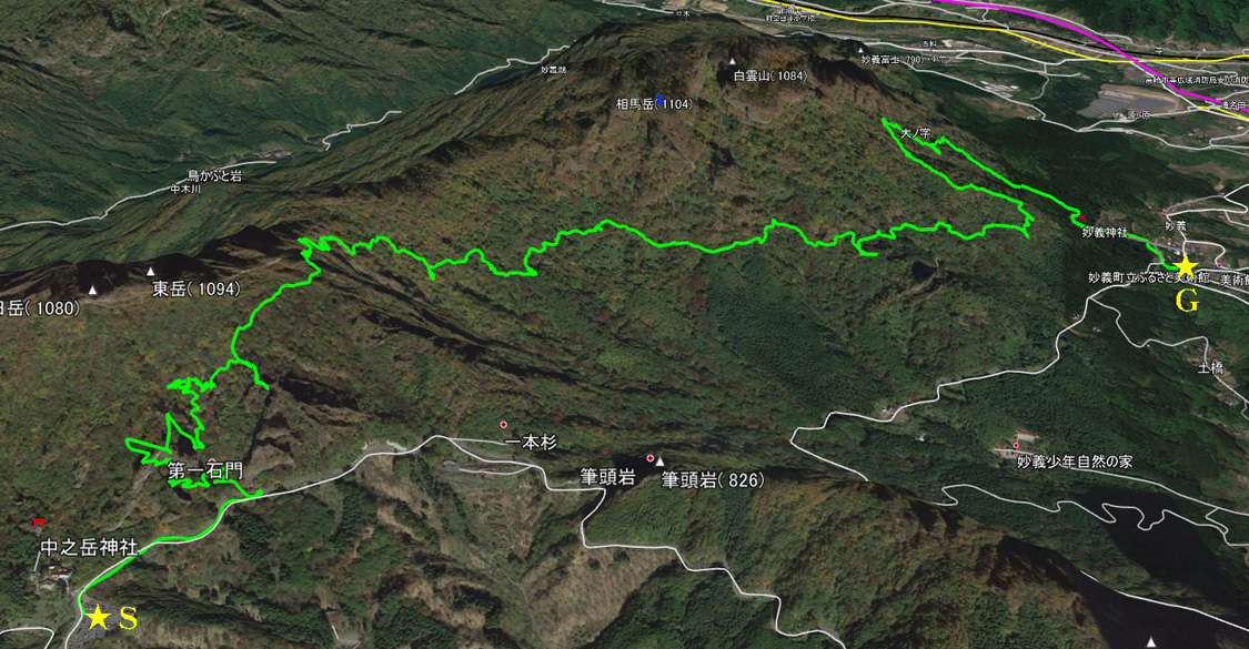 妙義山中間道(大の字経由)鳥瞰図![]() |