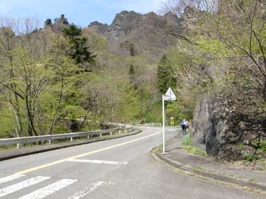 「道の駅みょうぎ物産センター」駐車場から県道196号に出て車道を「さくらの里」方面へ歩く。