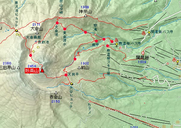 ![]() クリックすると「妙高山登山口」近辺の 広域地図を見ることが出来ます。マップコード 469-228-692 |