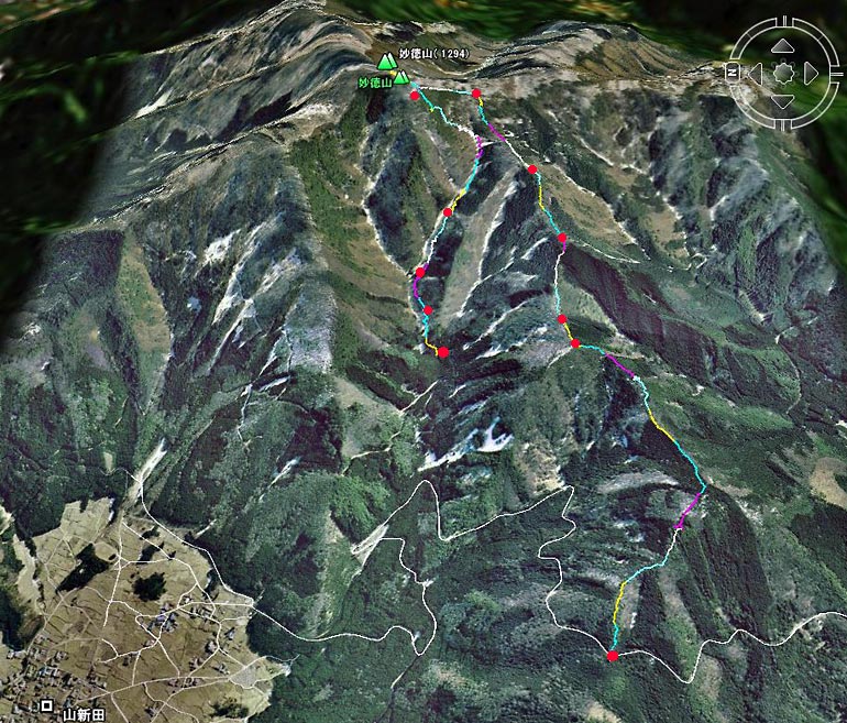 これより妙徳山南峰より白鬚神社里宮への下山風景 | ||||