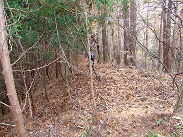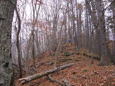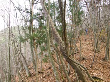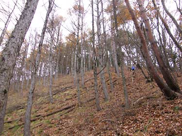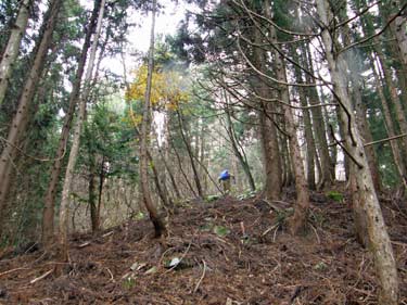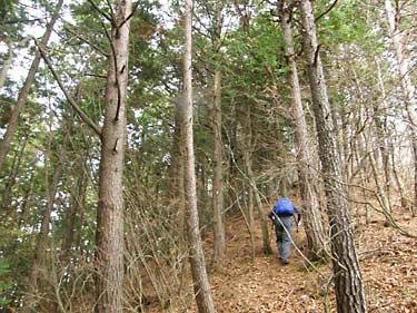標高950M地点を目指す | 標高950M地点/細尾根を緩く下ってから上り返す | |||