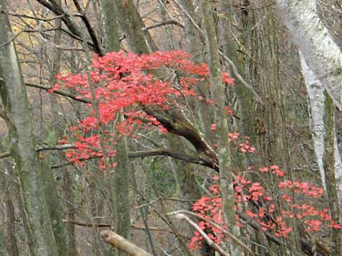 標高1030M地点から尾根歩きとなる 紅葉のなごりがあちらこちらに見られる |