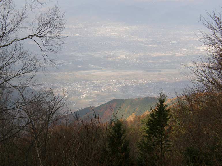生憎の天気で霞む長野市街地・飯綱山も雲の中だった/妙徳山南峰より | ||||