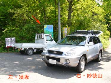 白鬚大明神の入り口には「信州山学クラブ」が設置した妙徳山登山口の案内板がある。