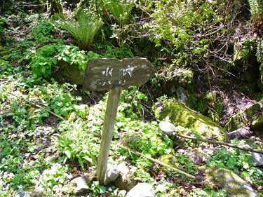 登山道下に流れる伏流水の音を聞きながら10分程上ると水神様の石標下にも名水の