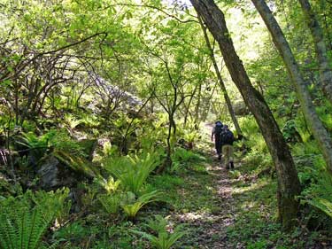 右に折れてシダ類が生い茂る登山道を暫く進むと、知る人ぞ知る隠れた名水「穴水」に出る。