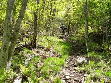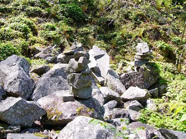 これより上部は枕状溶岩に覆われた岩ゴロの急登になり、右手にケルンが現れると