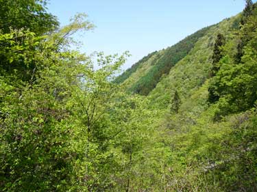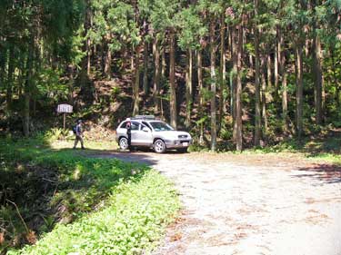 看板を目印に右折して林道高岡山新田線にはいる。 道に沿って車を走らせると