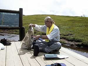 行程&所要時間 1999.08.28は未記録の為、2001.07.28の記録です。 駐車場発(三合目)6:10 〜四合目 6:37 〜五合目7:02 〜水場7:30 〜六合目7:35 〜八合目8:16 〜坪場(休憩)8:27 〜苗場山山頂9:30(昼食) 山頂発 11:00 〜(写真を撮りながら下山)〜駐車場着 13:48 |