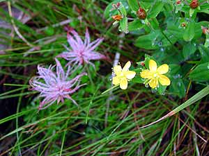 9.(左)チングルマ(右)シナノオトギリ | 10.苗場山山頂 2145m | ||
