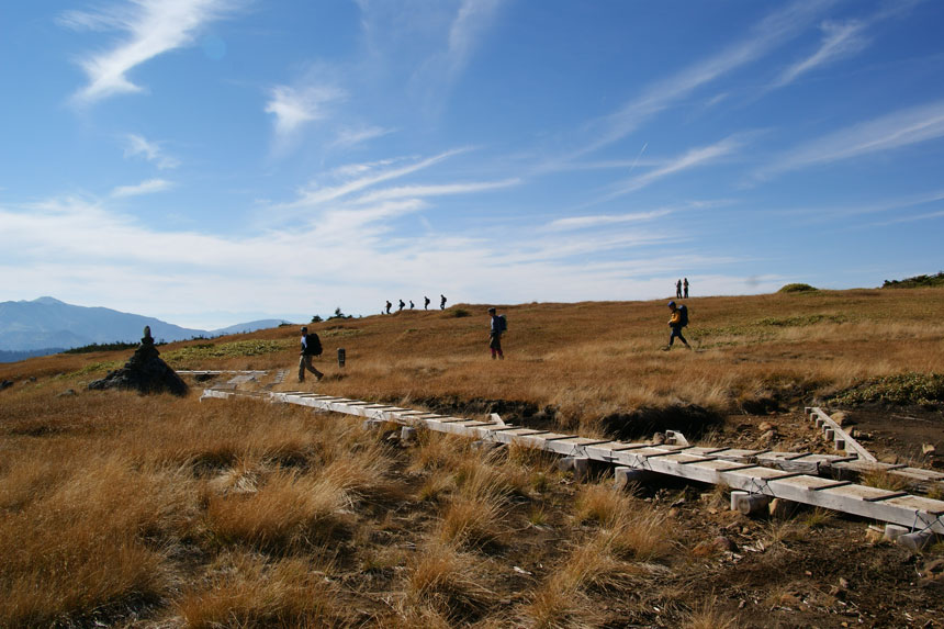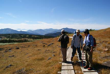 北アルプス・妙高山・火打山・鳥甲山の展望と池塘(ちとう)群/坪場近くより撮影 |