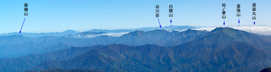 谷川岳方面大展望・左隅に祓川Rの踏み跡が確認できる |