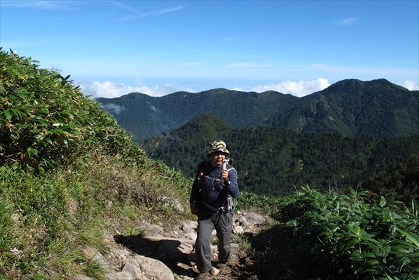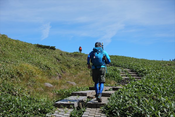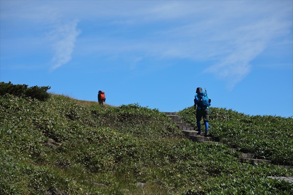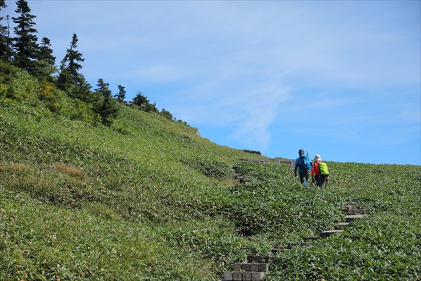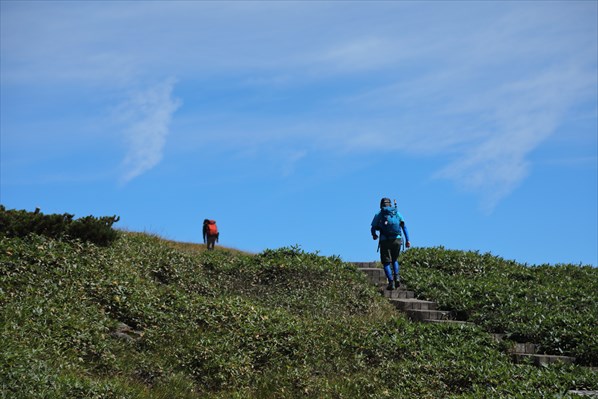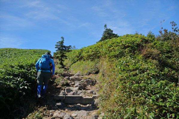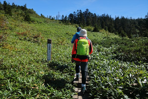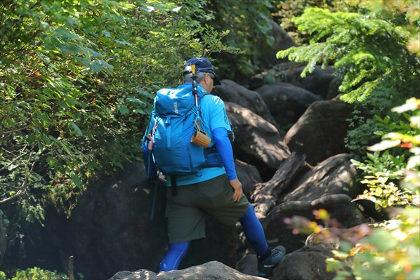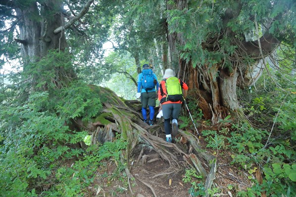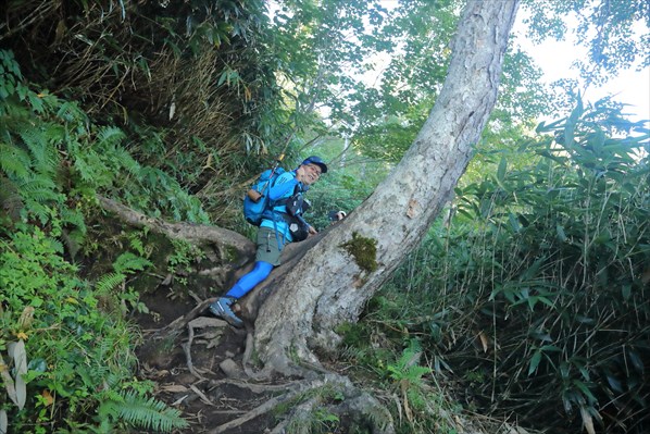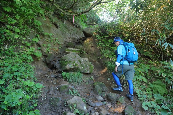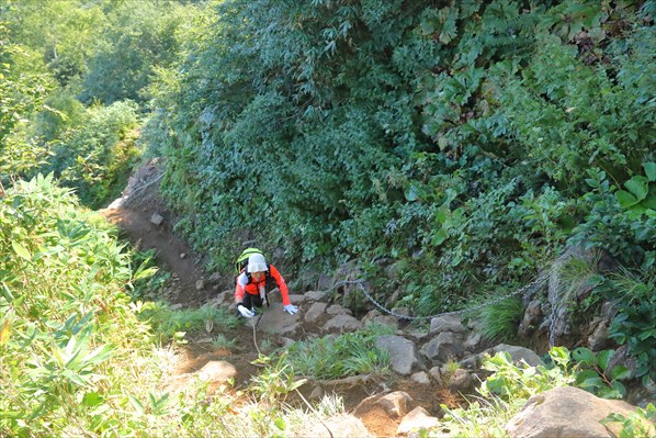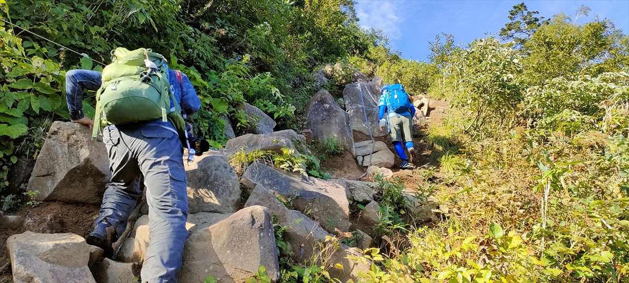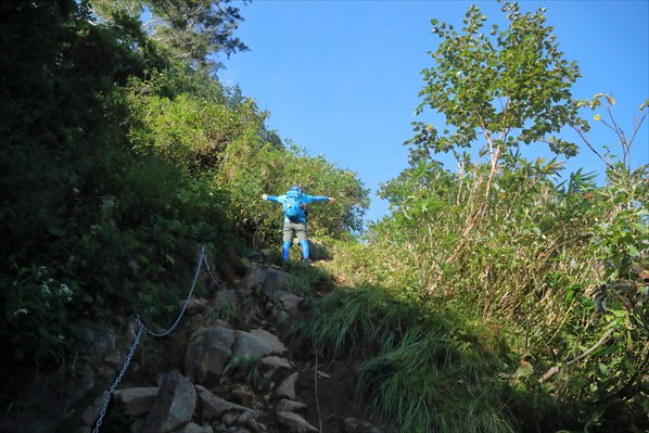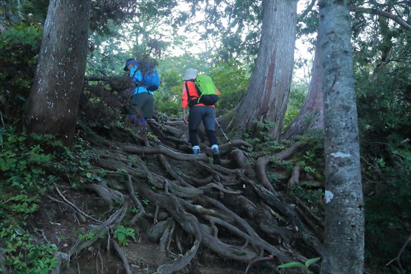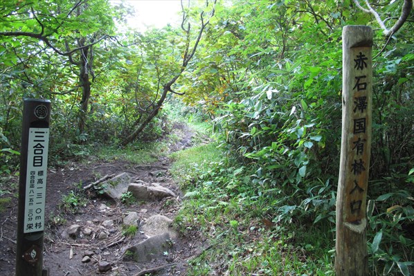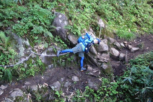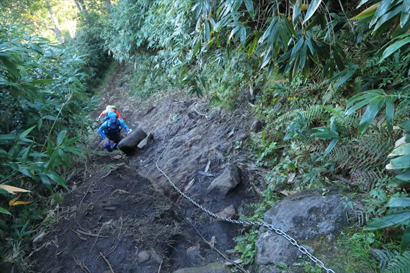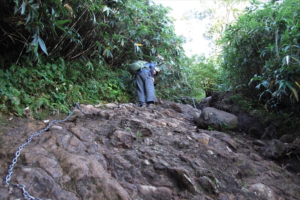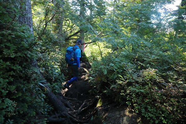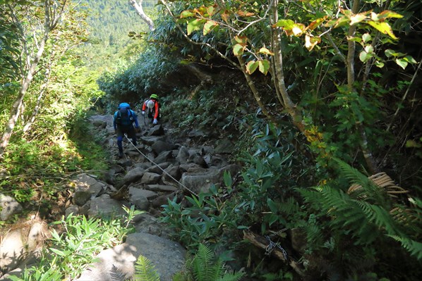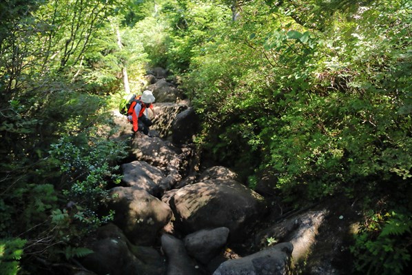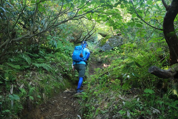九合目を通過すると樹林帯の岩ゴロ道となる |