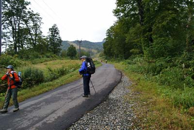 かぐらみつまた第二リフト町営駐車場・トイレ有 | 登山道入り口 左側車道を歩いても良いが直進でショートカット可 |