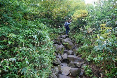 石ゴロ道 登りより下山時の方が気を使う場所だった |