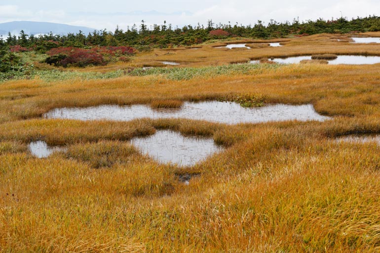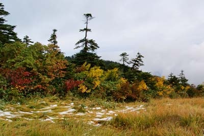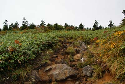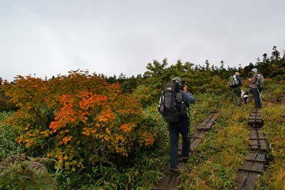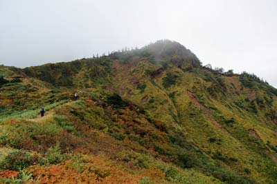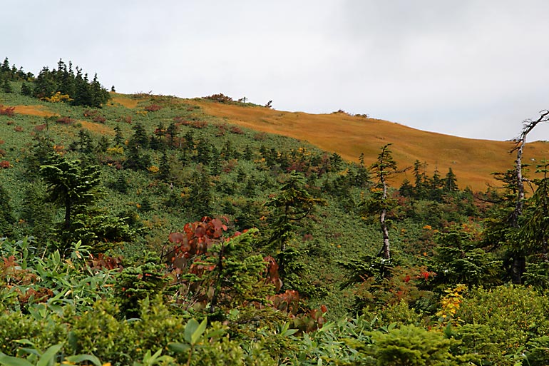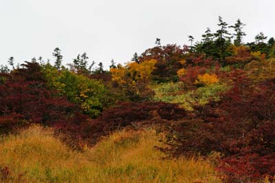 緑と草紅葉のコントラストが綺麗(小松原湿原へ続く中尾根上部) | ||||