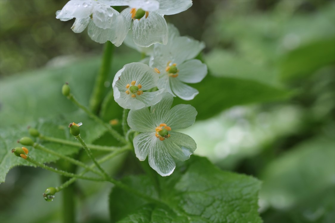 サンカヨウ(メギ科サンカヨウ属)) 雨で濡れると透明になります♪ |