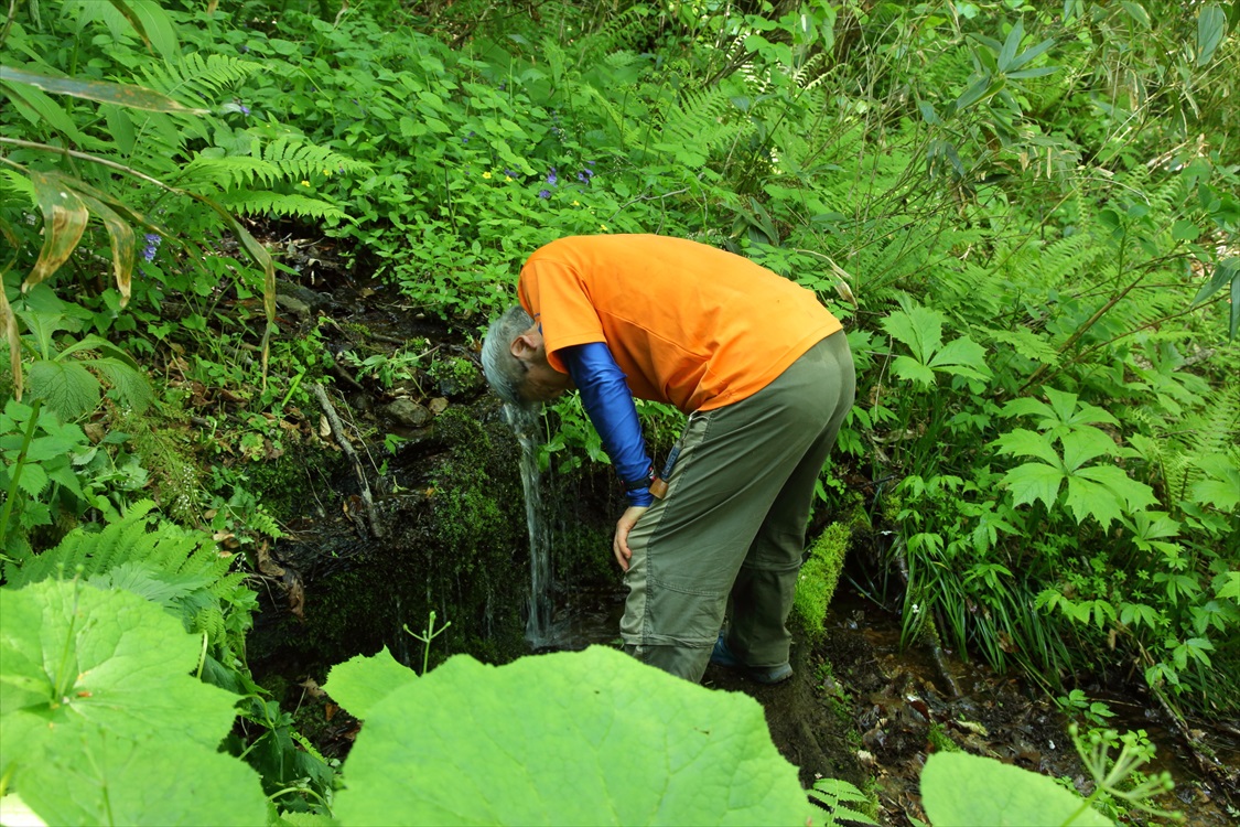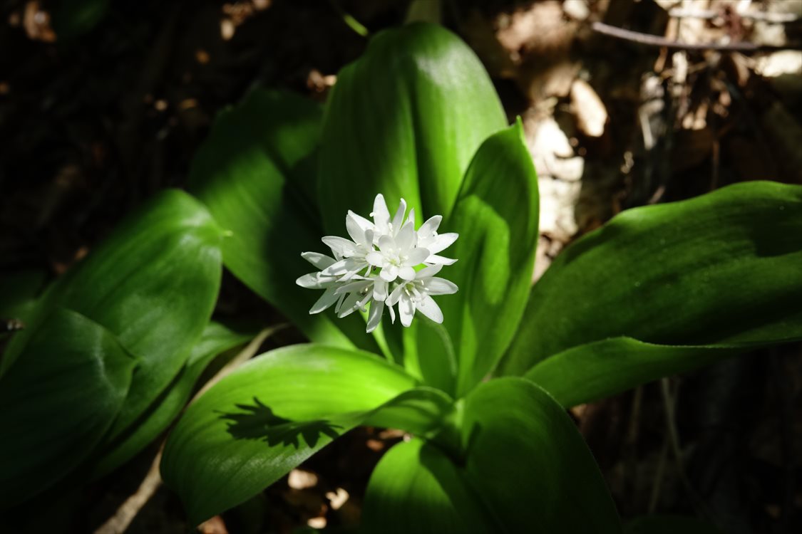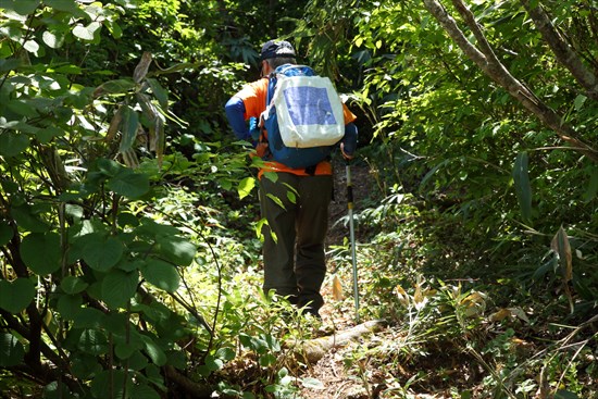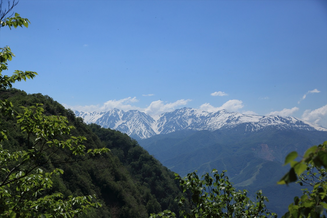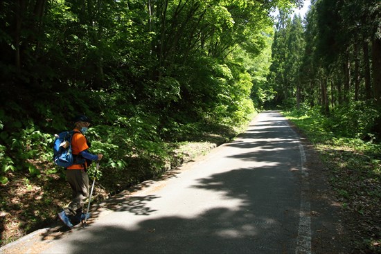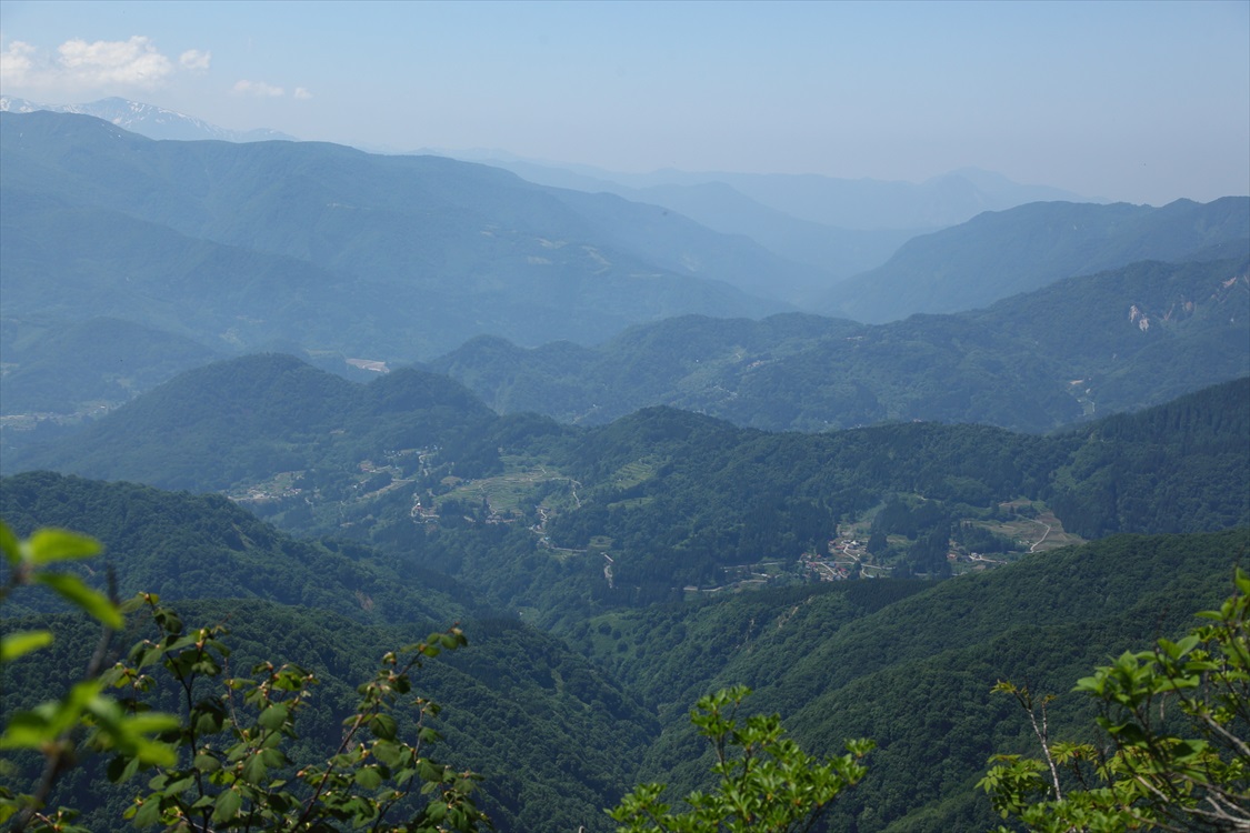 展望とシラネアオイのチェックで標高1700m地点まで訪れる 尖りは奥東山 |