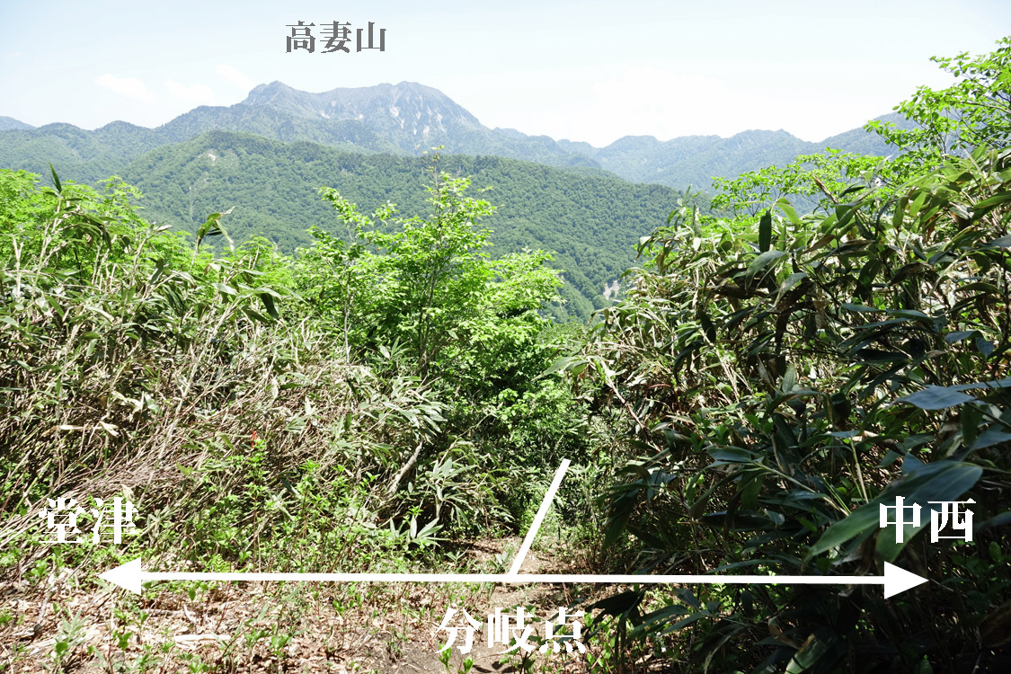 堂津・中西分岐点 指導標はないので両山からの下山時は見落とし注意 |