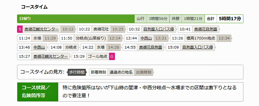 観光センター無料駐車場(トイレあり) | 奥裾花自然園まで2`の車道歩き | |||