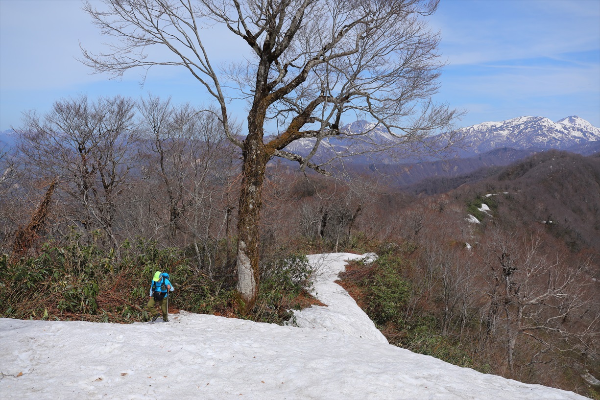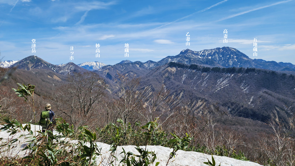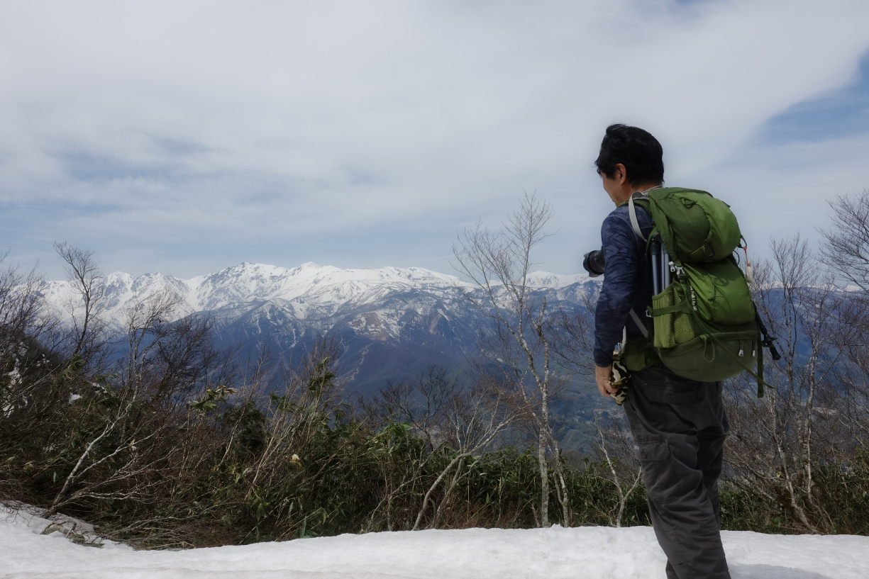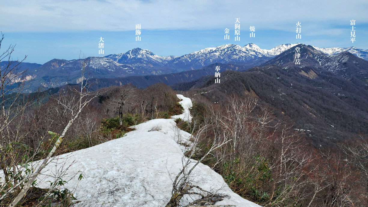 左から鑓ヶ岳・大雪渓・白馬岳・三国境・雪倉岳・朝日岳の山並み♪ |