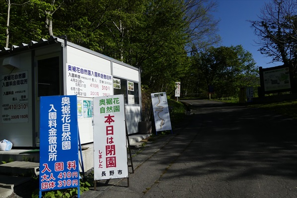 奥裾花自然園無料駐車場(24時間トイレあり)・入園料が必要です |