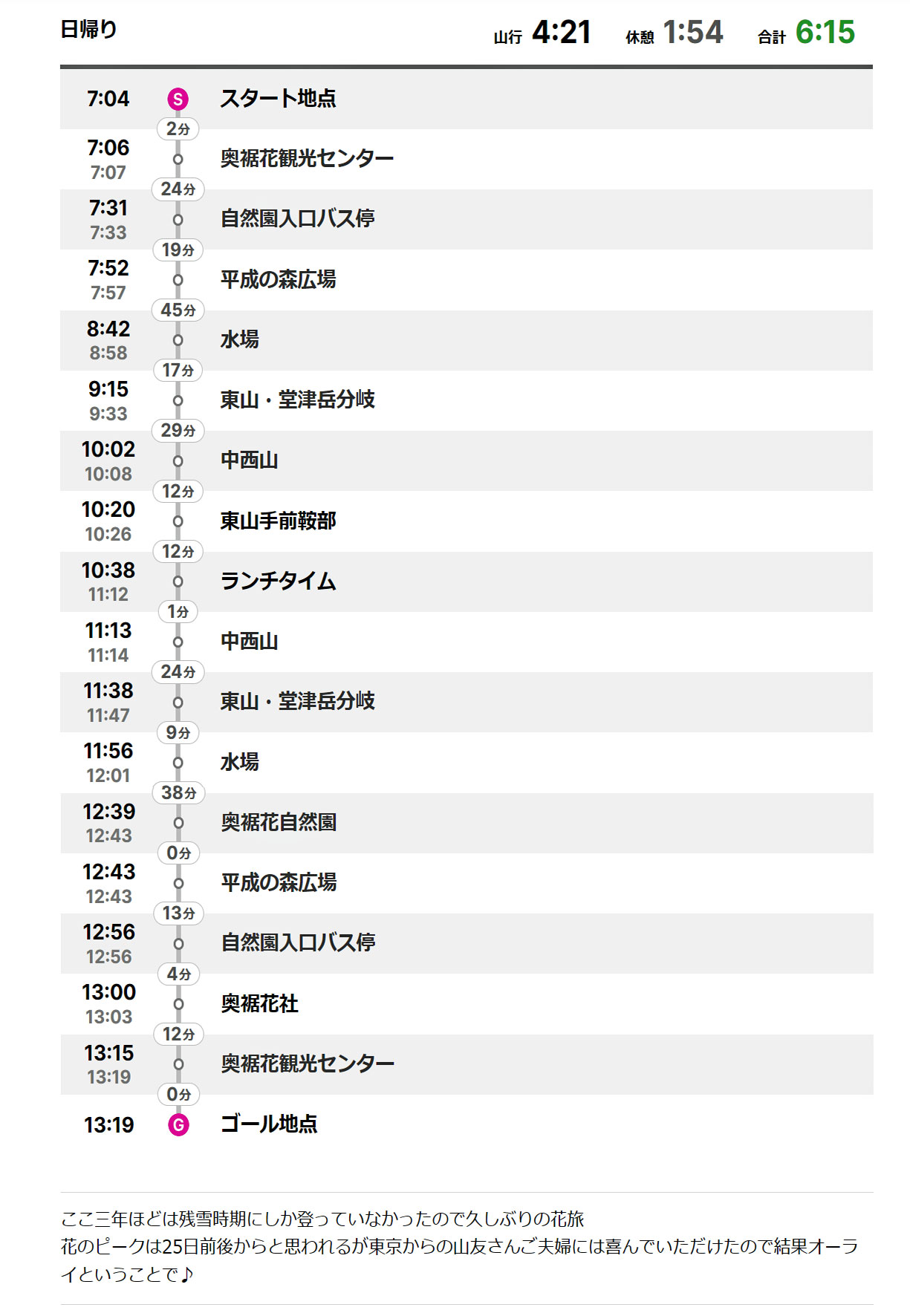 《中西山コースタイム他》